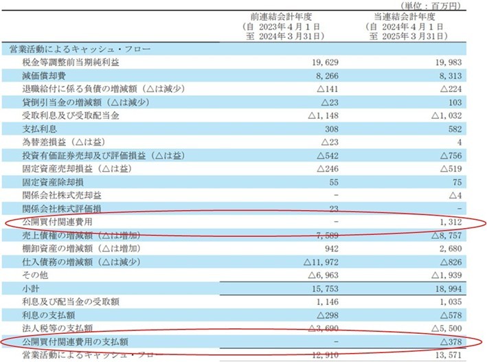 これ、2025年1月~3月分なのかな?牧野フライスのキャッシュフローの状況を見るとこうなっています。1~3月に支払ったのは378百万円なのかな?決算説明会では、2026/3期中でも10億円くらい発生するような話もあったやに聞いていますが、残りの10億円ということなのか、それとも追加で10億円ということなのか・・・。