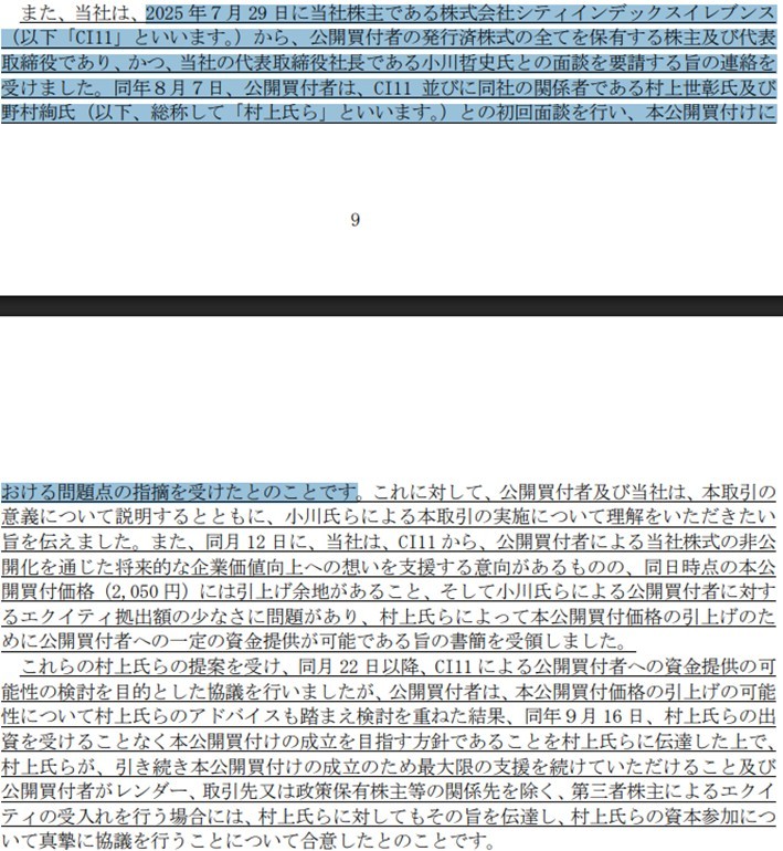 アクティビスト:待てい!2,050円が適正なわけないやろ!1株当たり純資産2,911円やないかい!せめて2,911円以上で買わんかい!