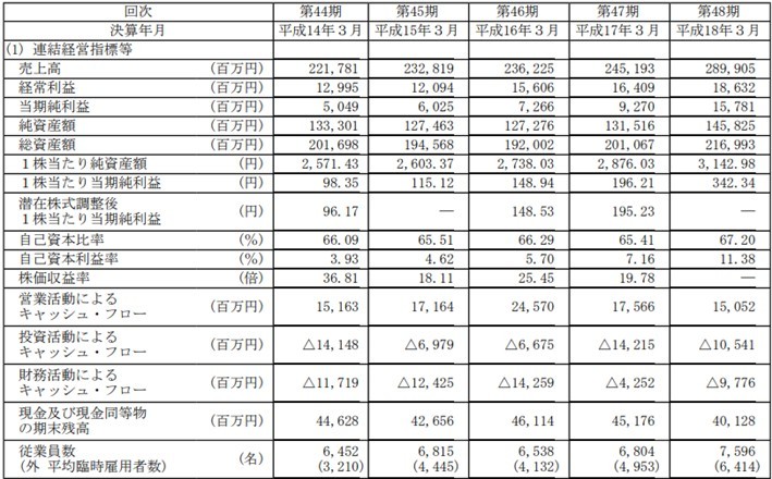 最近。ちなみに「2005年11月 長期的、持続的な企業価値の最大化を図るため、MBOによる株式の公開買付けを行い、上場を廃止」って書いてありました。MBOをした結果、長期的・持続的な企業価値を最大化したのかどうか微妙な感じ。ツバキ・ナカシマも同じなのですが、財務体質は悪化していますね・・・。まあそうなりますわな。