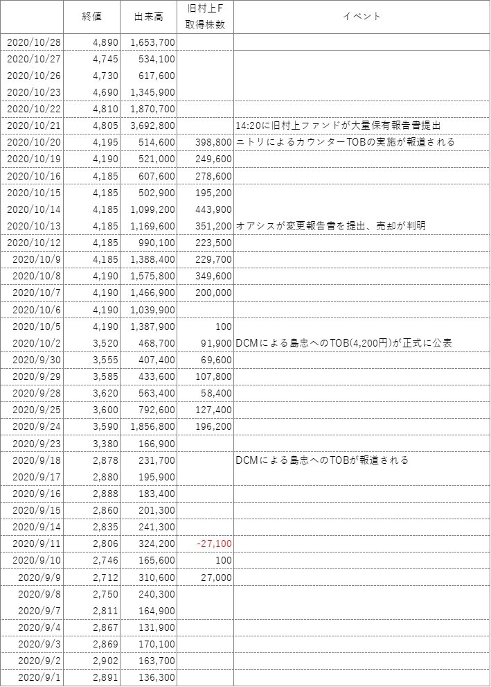 2020年10月28日 ニトリvsDCM・島忠~旧村上ファンドはどう動くか?~