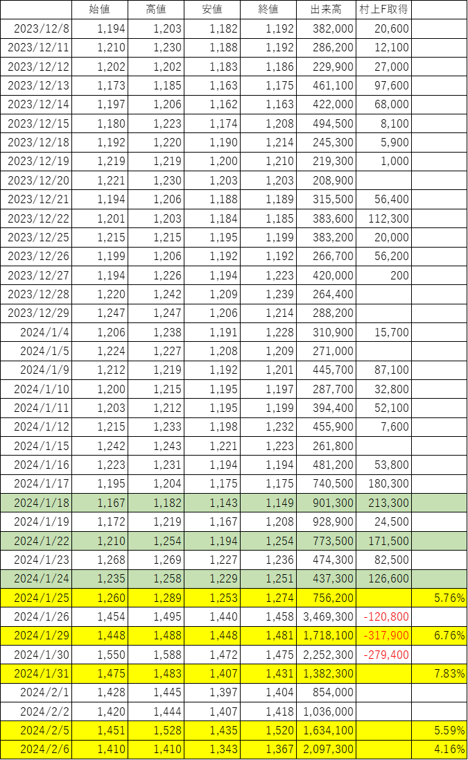 ホンマ、すぐ売ったな。大量保有報告書を提出して翌日に株価が急騰したら売却開始、売却したことが判明するへの九報告書を2月5日に提出したと思ったら、翌2月6日には5%を切った旨の変更報告書提出。
