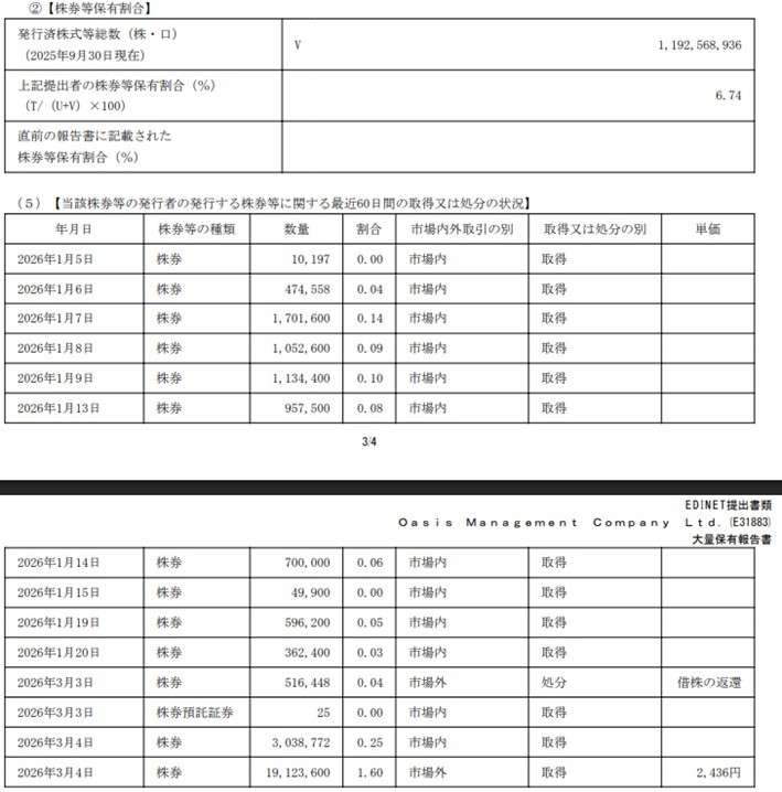以下の通り、アクティビストのオアシスが会計不祥事で揺れるニデックの大量保有報告書を提出しましたー!