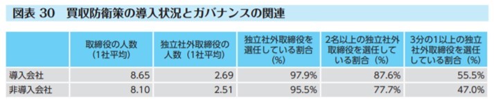 また、CG報告書では、買収防衛策の導入の有無と、買収防衛策を導入している会社については、導入の目的及びスキームの概要の記載を要請している。