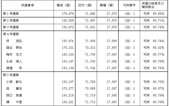 コラムで何度も取り上げましたが、そもそも関西スーパーの安定株主比率は高いです。今回の統合議案はギリギリの可決でしたが、ギリギリとは言え特別決議の議案を可決できたのです。以下、議案の賛成率です。