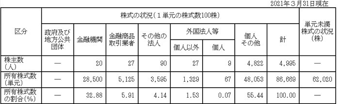 まったくもって本プランを継続する意義が相対的に低下していませんでしたね。東京機械製作所が平時型買収防衛策を継続していたら、アジアインベストメントファンドに市場で急速に大量の株式を取得されることはなく、高額のアドバイザリーフィーを支払う必要もなかったことでしょう。ちなみに「平時型買収防衛策を継続しようにも、株主総会で否決される可能性があったのでは?」というご指摘もあろうかと思いますので、念のため直近の株主構成を見ておきましょう。