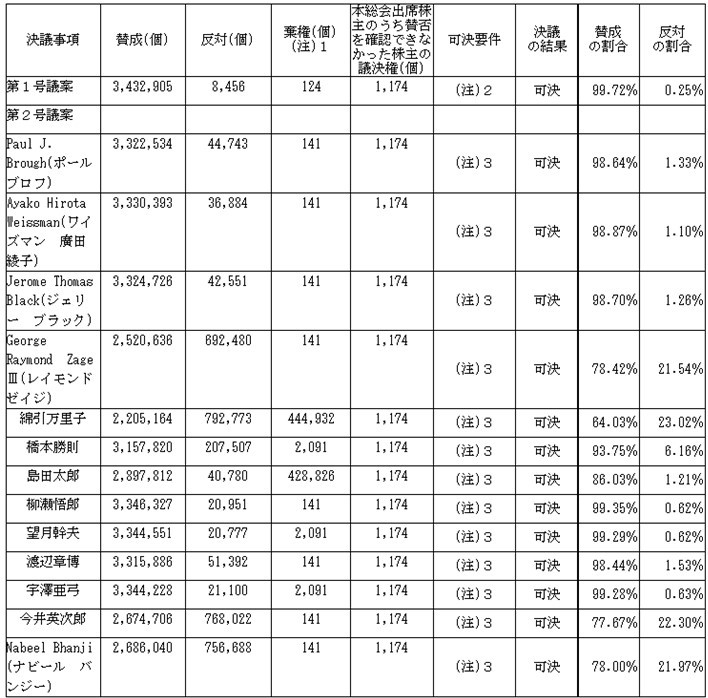 ちなみにアクティビスト出身である今井英次郎氏とナビール・バンジー氏の反対個数は、それぞれ、768,022個と756,688個です。綿引さんに対する反対個数と同じくらいですよ。アクティビスト出身者を取締役に選任するのはよくない、アクティビストに偏った取締役会はよくない、と考える株主が綿引さんの選任に反対する株主とほぼ同数いるのです。もちろんこれらの株主がアクティビスト出身者の選任に反対=非公開化に反対、というわけではないでしょう。ただ、このような株主は綿引さんのような方にこそ社外取締役としていてほしいと思っているに違いありません。