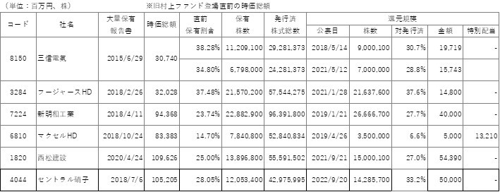 大規模な還元をし、大金を旧村上ファンドに支払い、そしてそのお金をもとに新たなターゲットに投資する。新たな被害者を生んでいるのです。