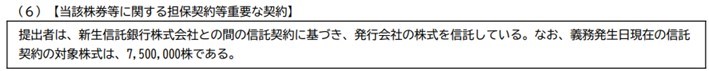 ・同日15:34に提出した変更報告書では「信託契約期間中、提出者は信託内の株式の処分を指図しない」という記載がなくなった。
