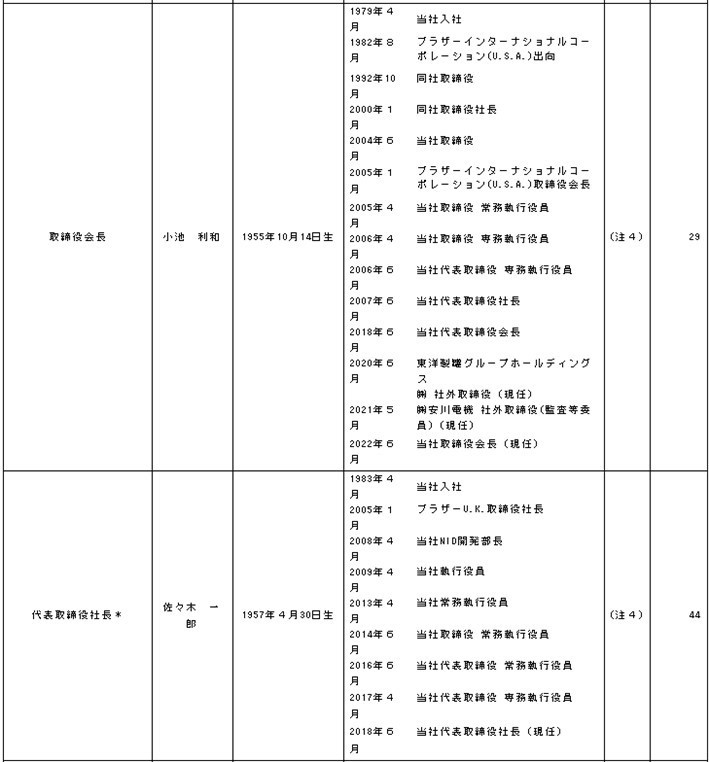 小池会長はブラザーUSAの経験が長いですね。佐々木社長もUKを経験しています。ちなみにここには載せませんでしたが、副社長も米国の経験が長いです。