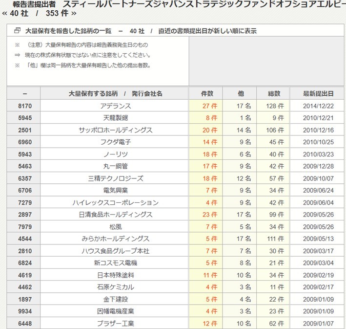 ざっとこんな感じです。ほかにもあると思いますよ。ワコールやサッポロは3Dのターゲットです。こんなにたくさんの会社がスティールに投資され、そして新たなアクティビストが登場しているのです。そして20年前に日本で大暴れしたスティールがまた上陸しようとしています。
